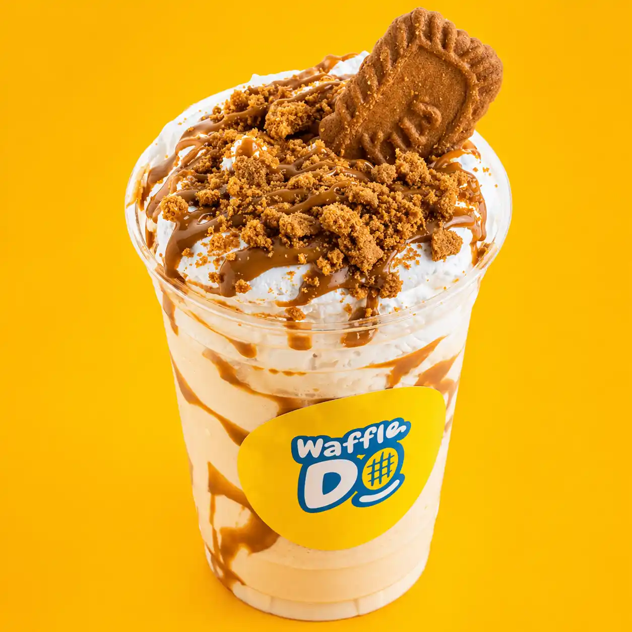 Helado de vainilla, leche, crema de Biscoff,crema batida, crumb de galleta Biscoff.