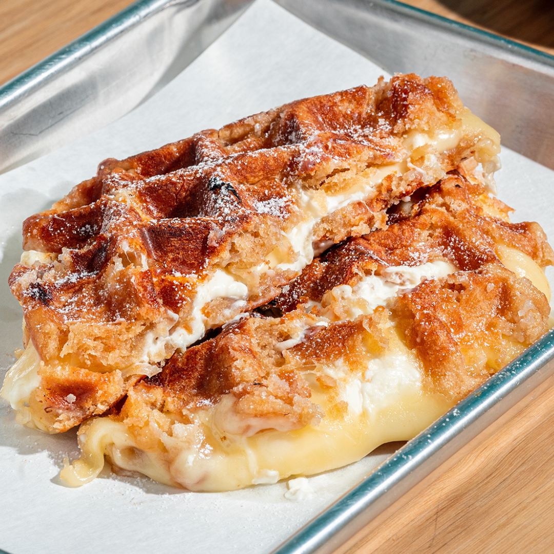 En Waffle Dō creemos en la tradición auténtica. Cada waffle es preparado siguiendo la receta tradicional belga de Liège, utilizando masa con perlas de azúcar que se caramelizan al cocinarlas, creando esa textura crujiente por fuera y suave por dentro que nos caracteriza.